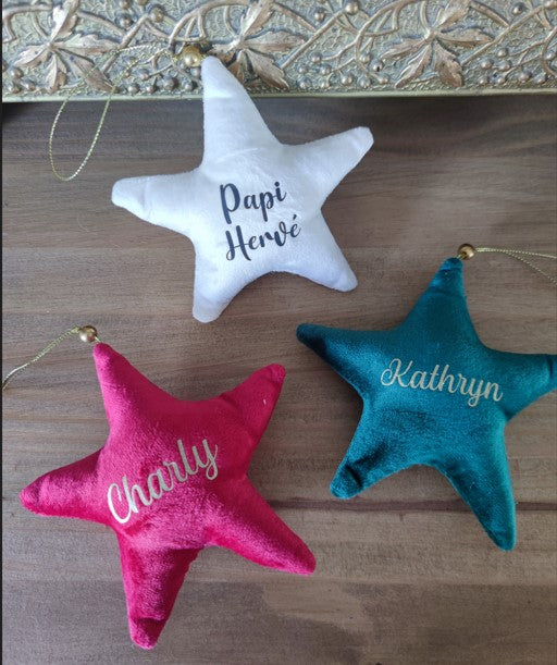 Personnalisez l'étoile avec le prénom de votre choix. En finition velours, elle est disponible en 6 coloris, elle mesure 12cm.